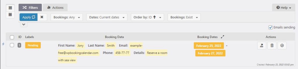 The dashboard lets you review bookings and respond to them (as shown in the screenshot below).